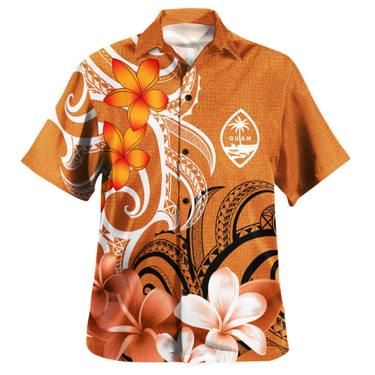 Guam Custom Personalised Hawaiian Shirt Polynesian Floral Spirit Orange