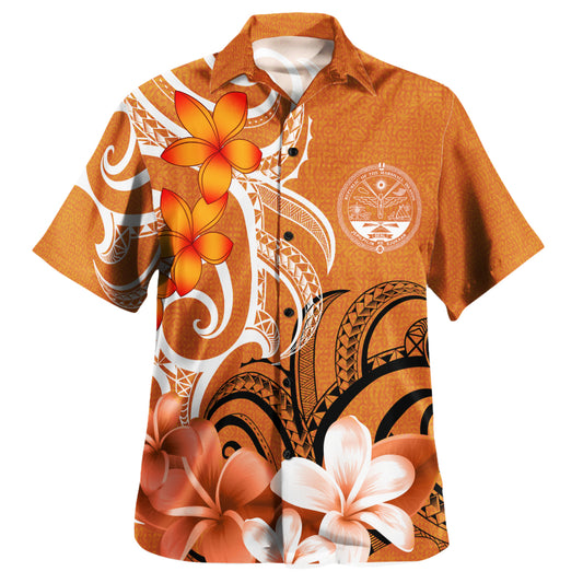 Marshall Islands Custom Personalised Hawaiian Shirt Polynesian Floral Spirit Orange
