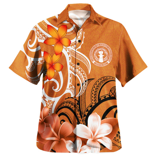 Northern Mariana Islands CNMI Custom Personalised Hawaiian Shirt Polynesian Floral Spirit Orange