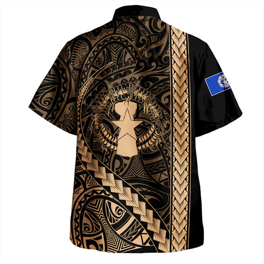 Northern Mariana Islands Hawaiian Shirt Coat Of Arms Polynesian Tribal Gold