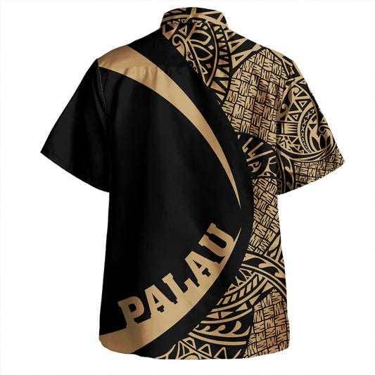 Palau Hawaiian Shirt Coat Of Arm Lauhala Gold Circle