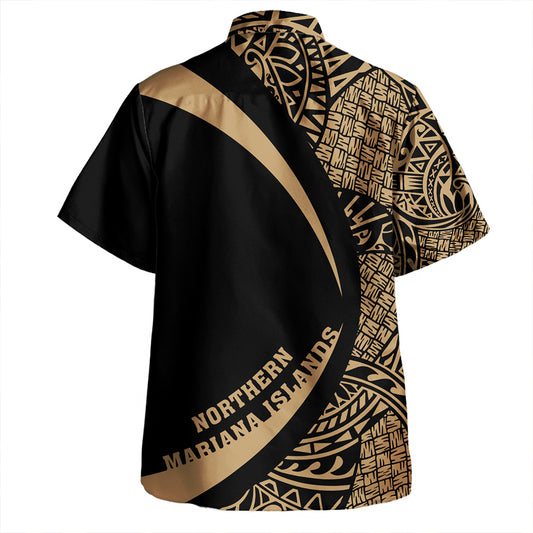 Northern Mariana Islands Hawaiian Shirt Coat Of Arm Lauhala Gold Circle