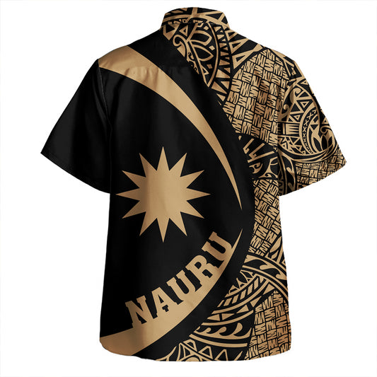 Nauru Hawaiian Shirt Coat Of Arm Lauhala Gold Circle