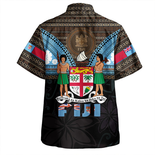 Fiji Hawaiian Shirt Fiji Map With Coat Of Arms Polynesian Tatau Half Black