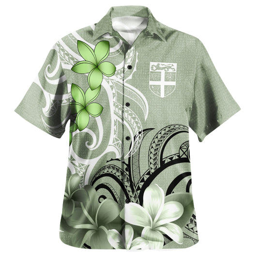 Fiji Custom Personalised Hawaiian Shirt Polynesian Floral Spirit Sage Green