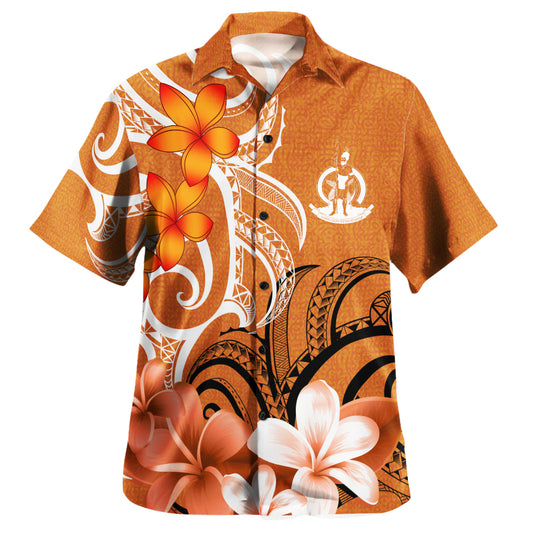 Vanuatu Custom Personalised Hawaiian Shirt Polynesian Floral Spirit Orange