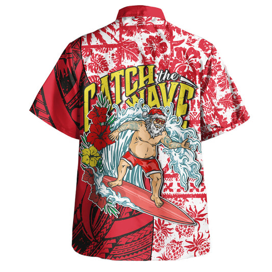 Hawaii Christmas Hawaiian Shirt Surfing Santa Polynesian Pattern Vintage Style