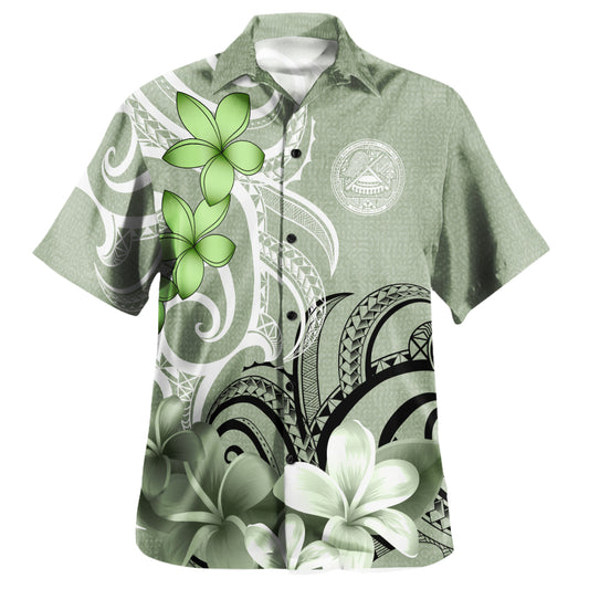 American Samoa Custom Personalised Hawaiian Shirt Polynesian Floral Spirit Sage Green
