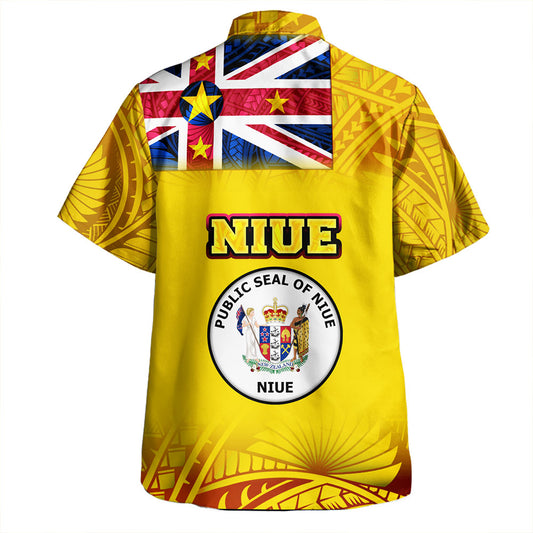 Niue Hawaiian Shirt Polynesian Flag With Coat Of Arms