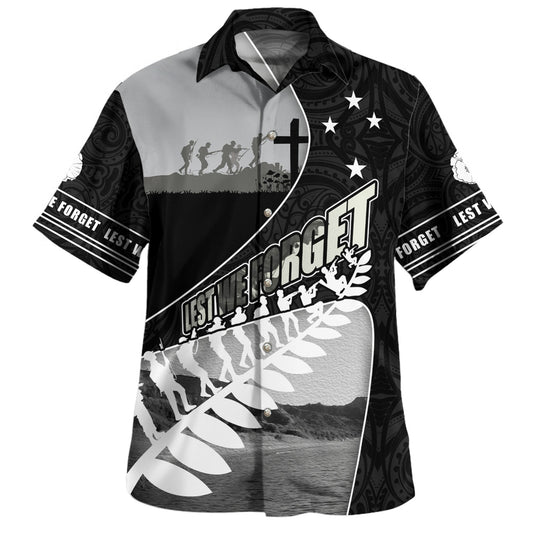 New Zealand Hawaiian Shirt Custom Anzac Day Lest We Forget Silver Fern