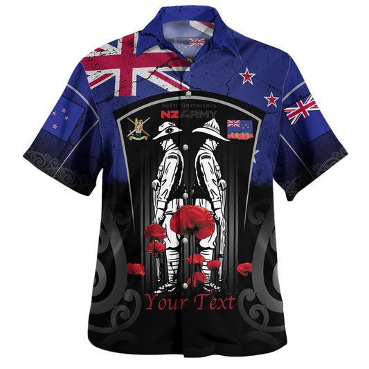 New Zealand Custom Personalised Hawaiian Shirt Anzac Day Flag Maori Patterns