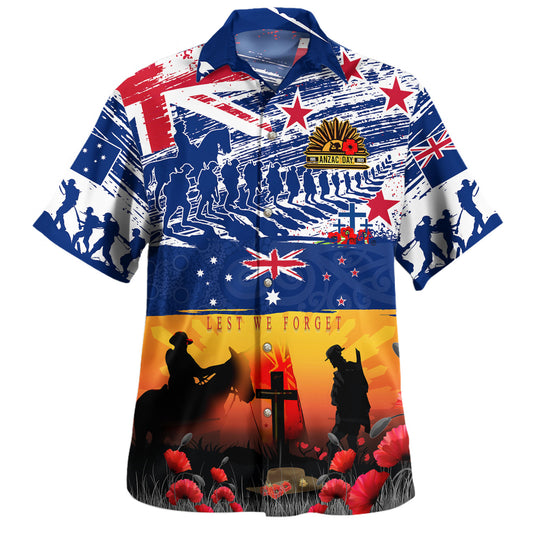 New Zealand Hawaiian Shirt Anzac Day Flag Lest We Forget