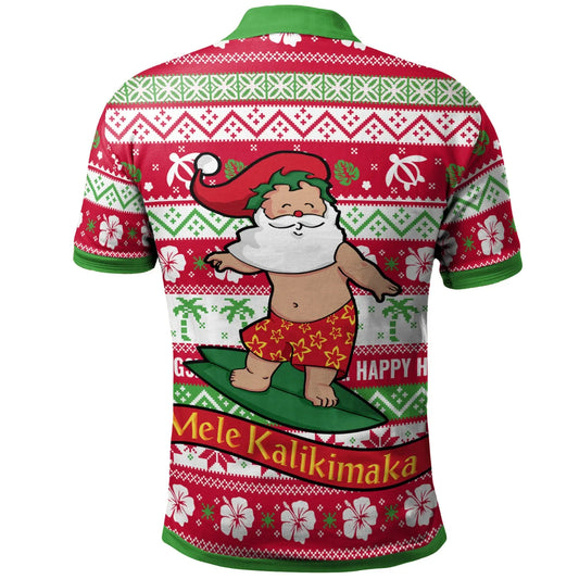 Hawaii Christmas Polo Shirt - Santa Surfing