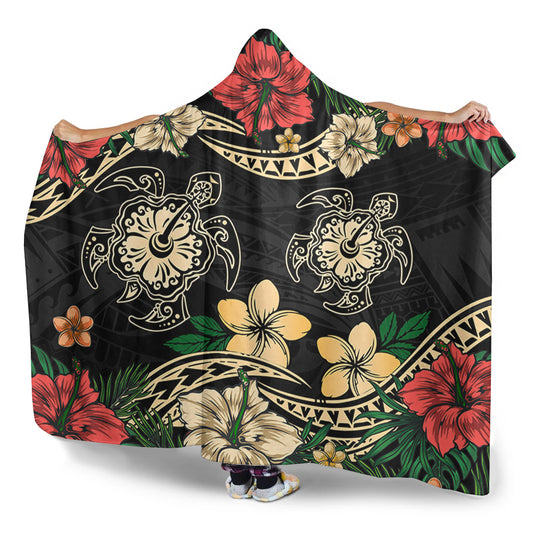 Hawaii Hooded Blanket Hibiscus Plumeria Mix Polynesian Turtle