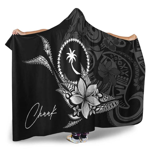Federated States Of Micronesia Polynesian Hooded Blanket - Summer Plumeria (Black)