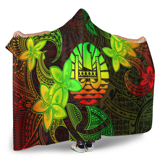 Tahiti Hooded Blanket Plumeria Flowers Vintage Style Reggae Colors