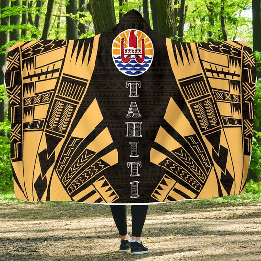 Tahiti Hooded Blanket - Polynesian Tattoo Gold