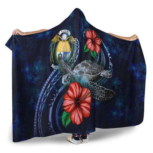 Nauru Polynesian Hooded Blanket - Blue Turtle Hibiscus