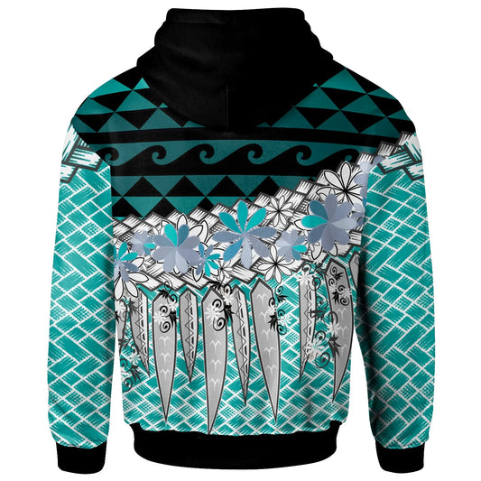 Marshall Islands Polynesian Hoodie - Turtle With Blooming Hibiscus Turquoise