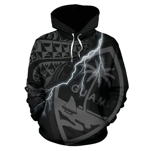 Guam Polynesian All Over Custom Personalised Hoodie - Black Horizontal Style