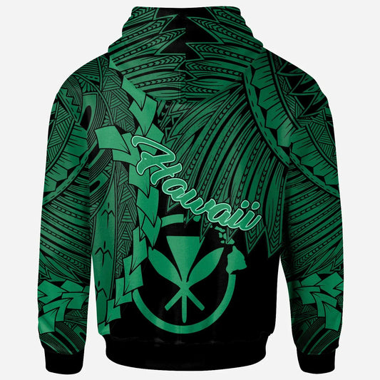 Polynesian Hawaii Hoodie - Tribal Wave Tattoo Green