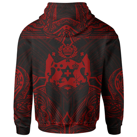 Tonga Custom Personalised Hoodie - Coat Of rms With Patterns Red Color