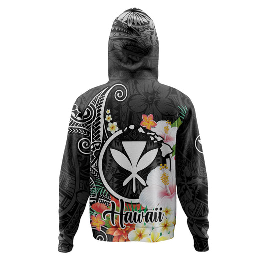 Hawaii Hoodie Custom Polynesian Curve Pattern Design With Tropical Floral Collection