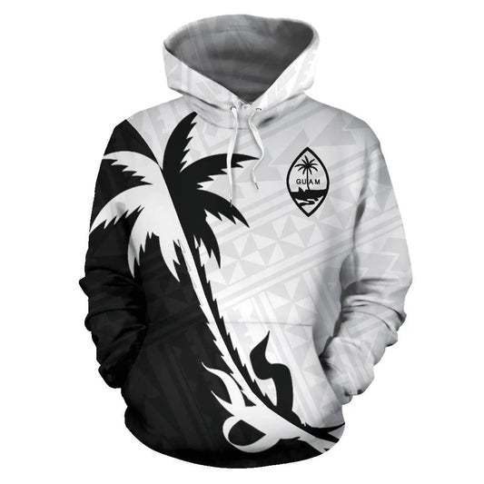 Guam Hoodie - Guam Coat Of Arms Coconut Tree Black White