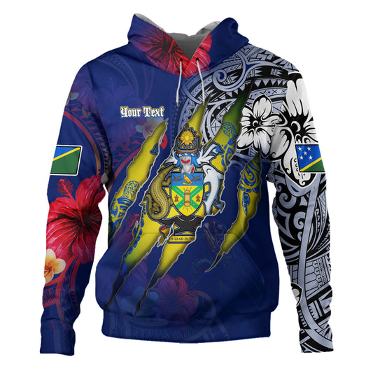 Solomon Islands Hoodie Custom Solomon Islander Blood Inside Me Polynesian Sleeve Tattoo Tropical Blue