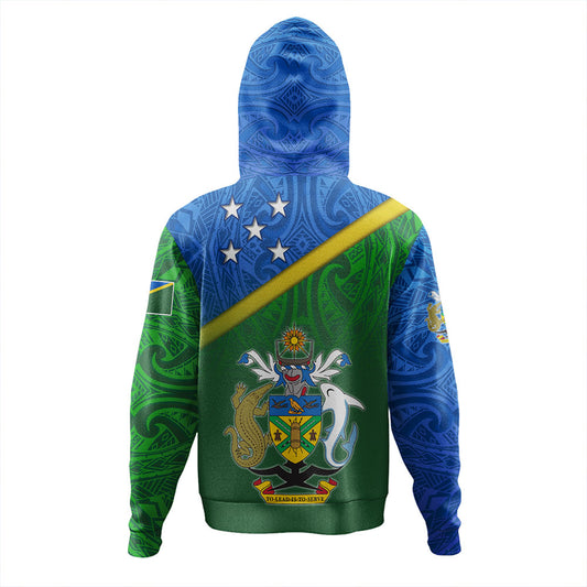 Solomon Islands Hoodie Flag Color With Traditional Patterns