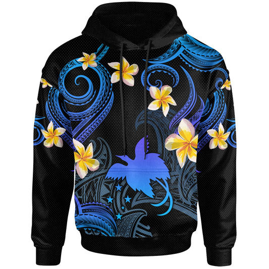 Papua New Guinea Hoodie - Custom Personalised Polynesian Waves with Plumeria Flowers (Blue)