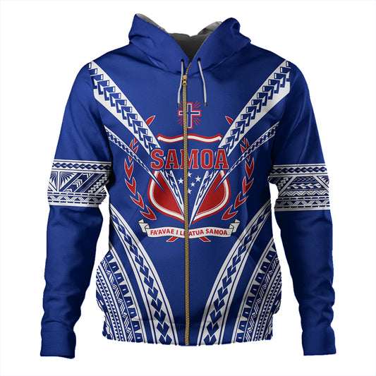 Samoa Hoodie - Samoa Coat Of Arms With Polynesian Tribal Flag Style