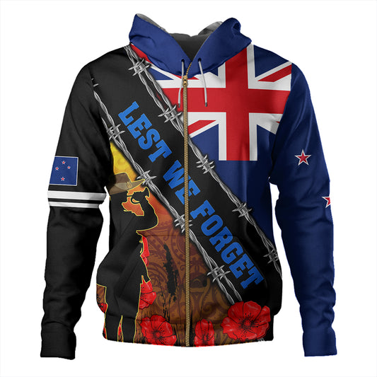 New Zealand Hoodie Lest We Forget Poppy Barbwire Style