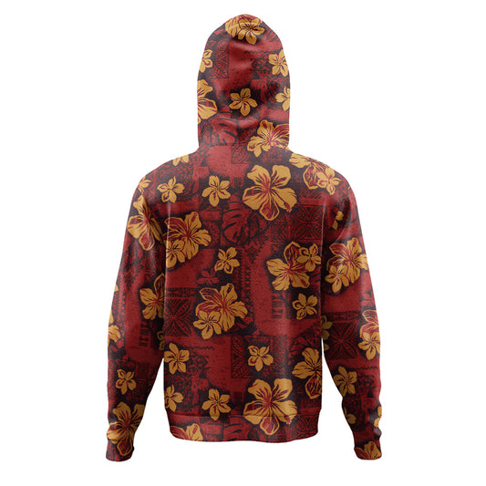 Hawaii Hoodie Polynesian Tribal And Hibiscus Vintage Red Gold