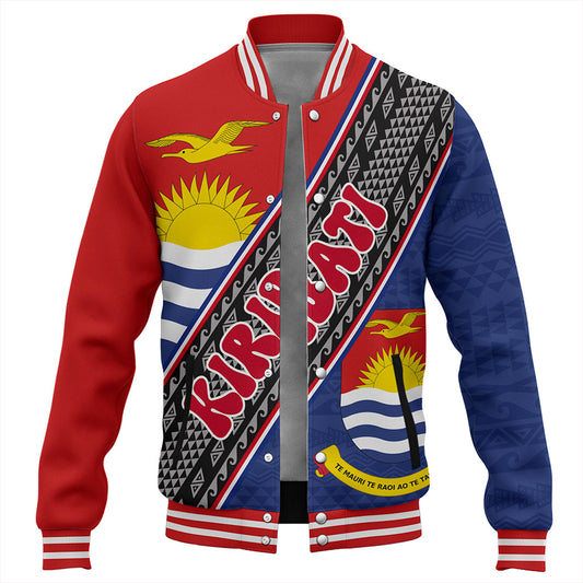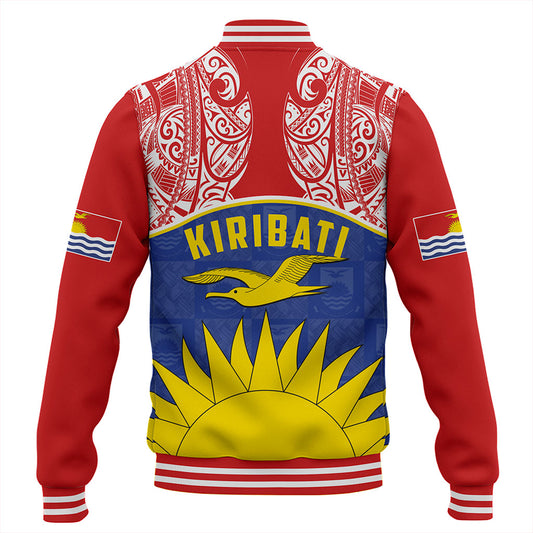 Kiribati Baseball Jacket Polynesian Tattoo Flag And Coat Of Arms