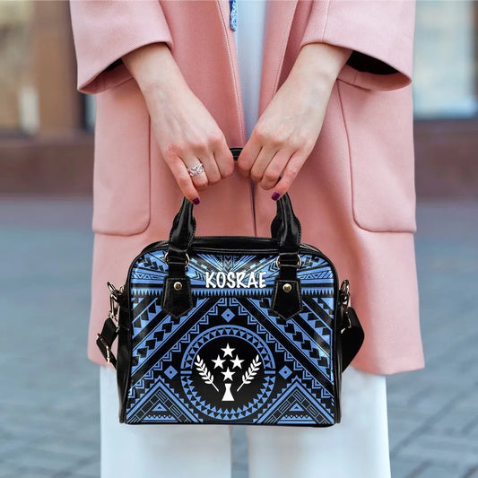 Kosrae Shoulder Handbag - Kosrae Flag In Polynesian Tattoo Style (Blue)