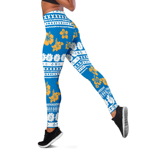 Samoa Polynesian Custom Personalised Legging - Floral With Seal Blue