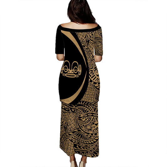 Marquesas Islands Off Shoulder Long Dress Kakau Style Gold
