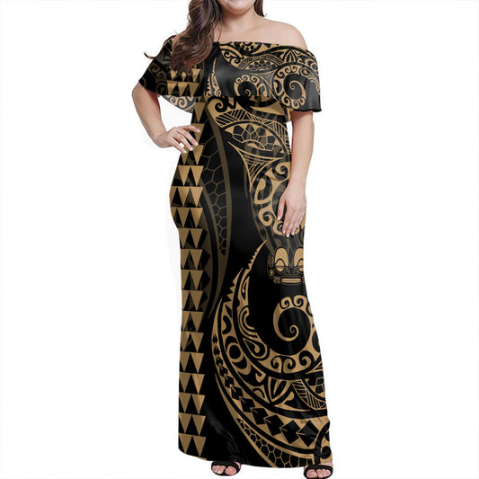Marquesas Islands Combo Dress And Shirt Kakau Style Gold