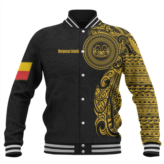 Marquesas Islands Baseball Jacket Polynesian Tattoo Flag And Coat Of Arms