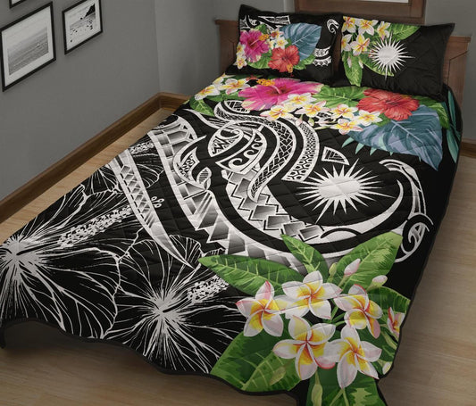 Marshall Islands Polynesian Quilt Bed Set - Summer Plumeria (Black)