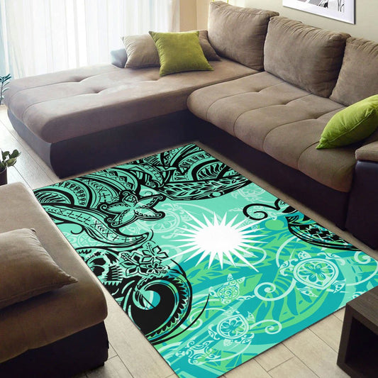 Marshall Islandss Polynesian Custom Personalised Area Rug - Green Tribal Wave