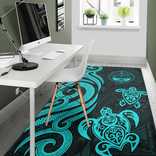 Marshall Islandss Area Rug - Turquoise Tentacle Turtle Crest