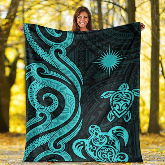 Marshall Islands Premium Blanket - Turquoise Tentacle Turtle Crest