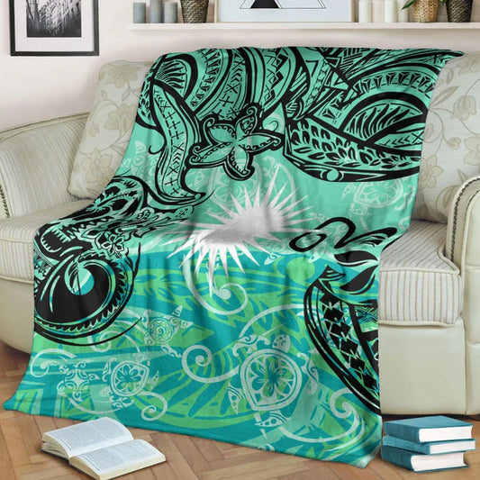 Marshall Islands Premium Blanket - Green Tentacle Turtle Crest