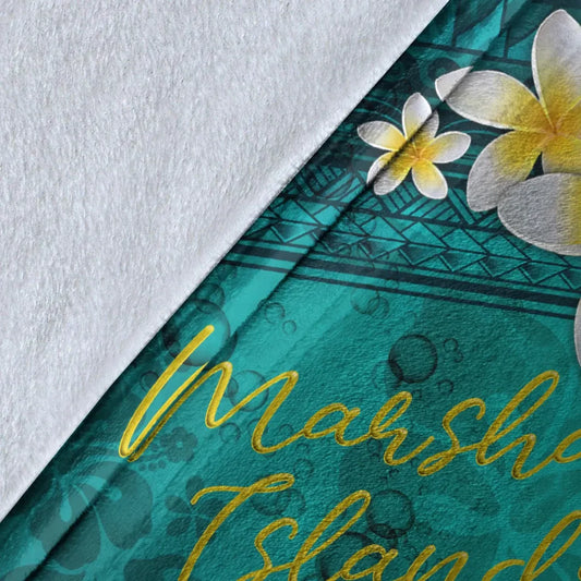 Marshall Islands Custom Personalised Premium Blanket White - Turtle Plumeria Banana Leaf