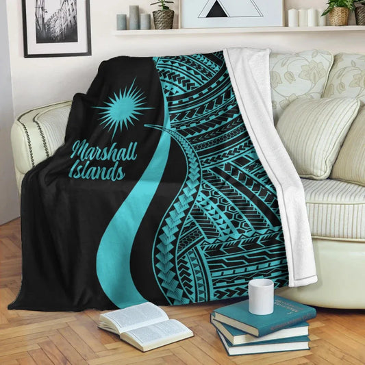 Marshall Islands Custom Personalised Premium Blanket - Turquoise Polynesian Tentacle Tribal Pattern Crest