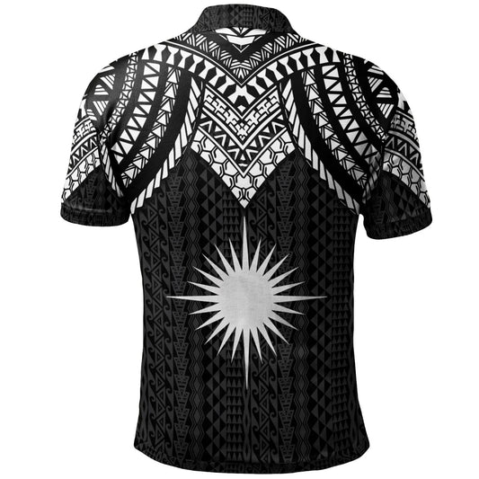 Marshall Islands Polo Shirt - Marshall Islands Flag Polynesian Chief Tattoo Flag Version