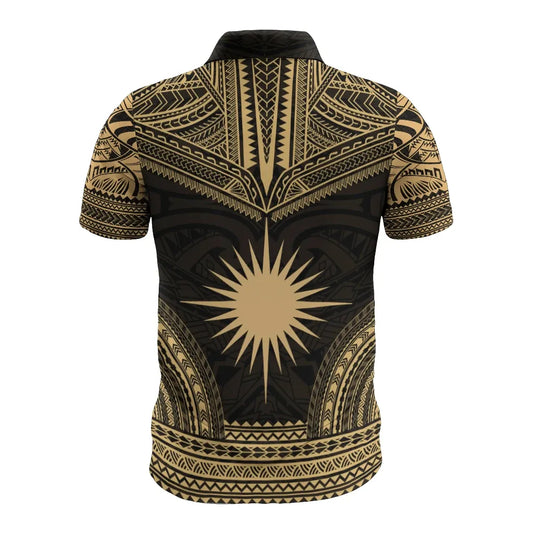 Marshall Islands Polo Shirt - Marshall Islands Flag Polynesian Chief Tattoo Gold Version