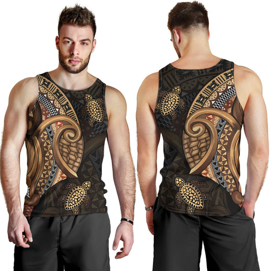 Fiji Tank Top Golden Turtles Fiji Tribal Pattern